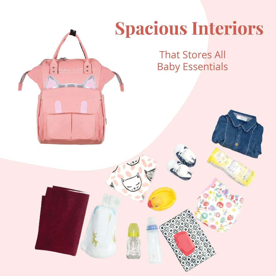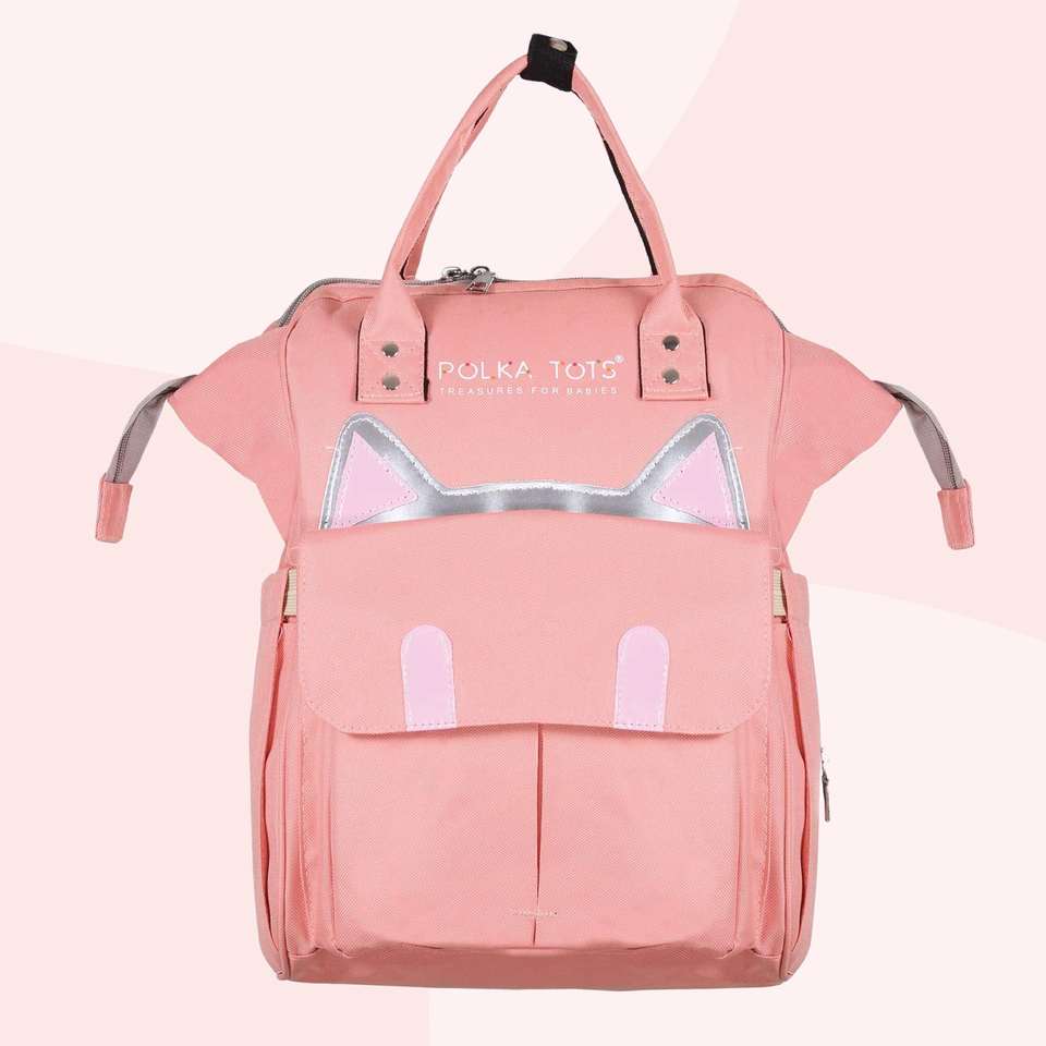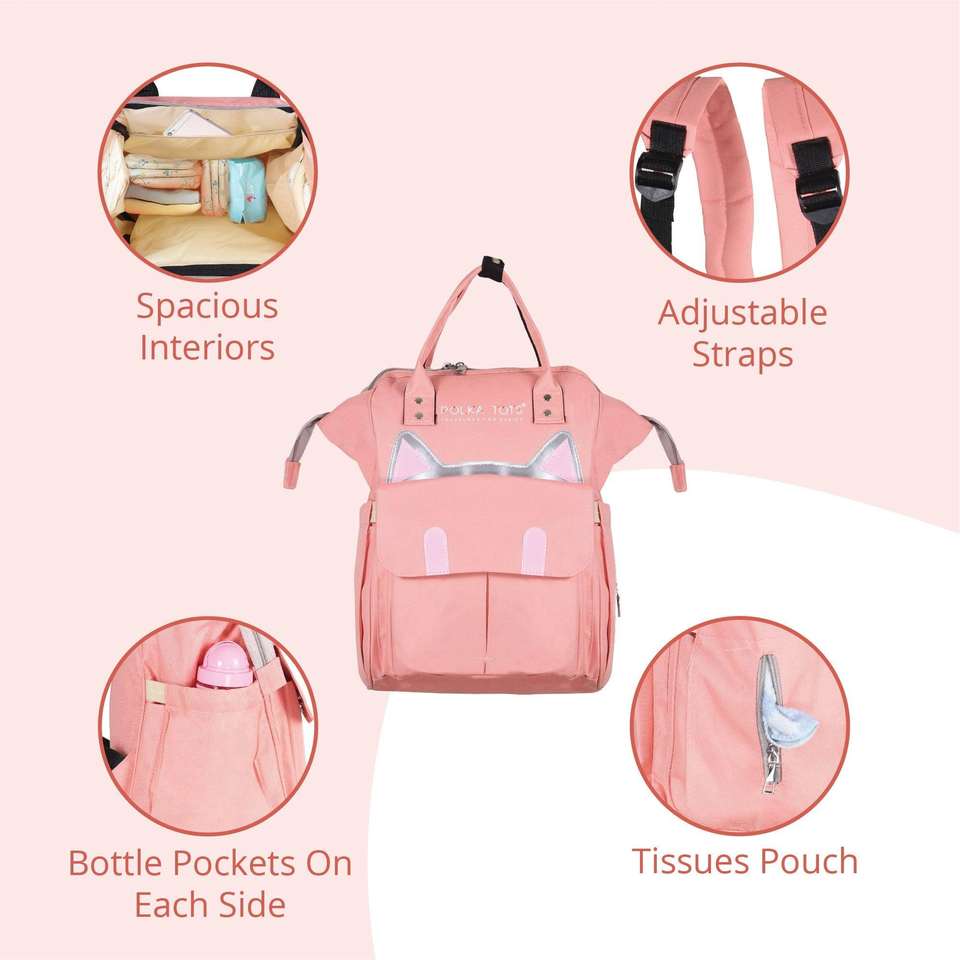 กระเป๋าผ้าอ้อมลายจุดสำหรับคุณแม่กระเป๋าเป้สะพายหลังสำหรับคุณแม่กระเป๋าสไตล์แมว-พีช