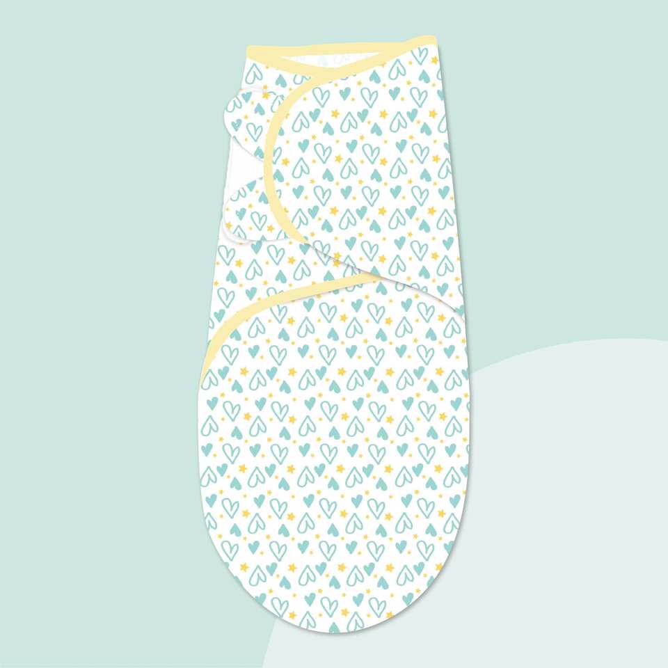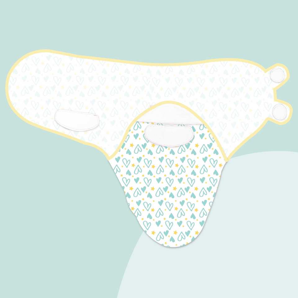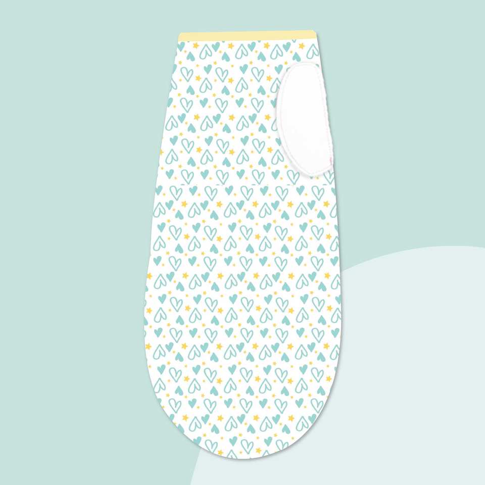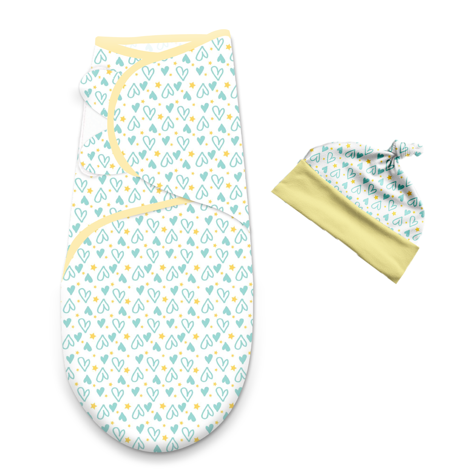 ผ้าห่อตัวเด็กอ่อนลายหัวใจพร้อมหมวกสีฟ้า