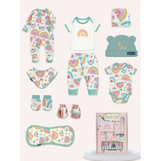 Polka Tots Pack of 10 Rainbow Print Jumbo Newborn Gift Hamper Set - Multicolor