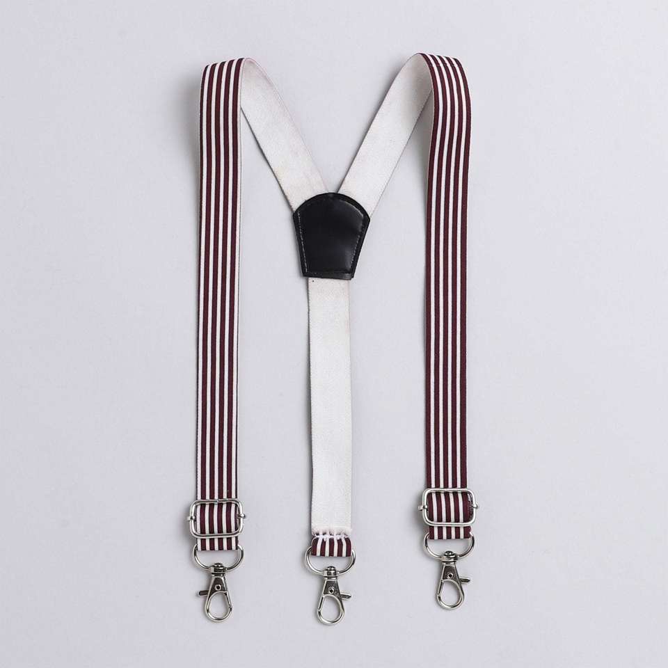 เสื้อปาร์ตี้ลายจุดพร้อมโบว์ไม้และสายแขวนลายสีน้ำตาลแดง