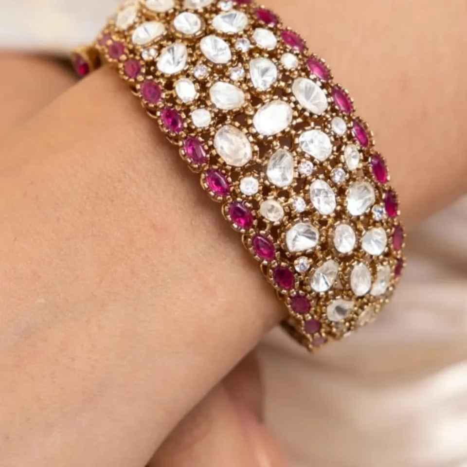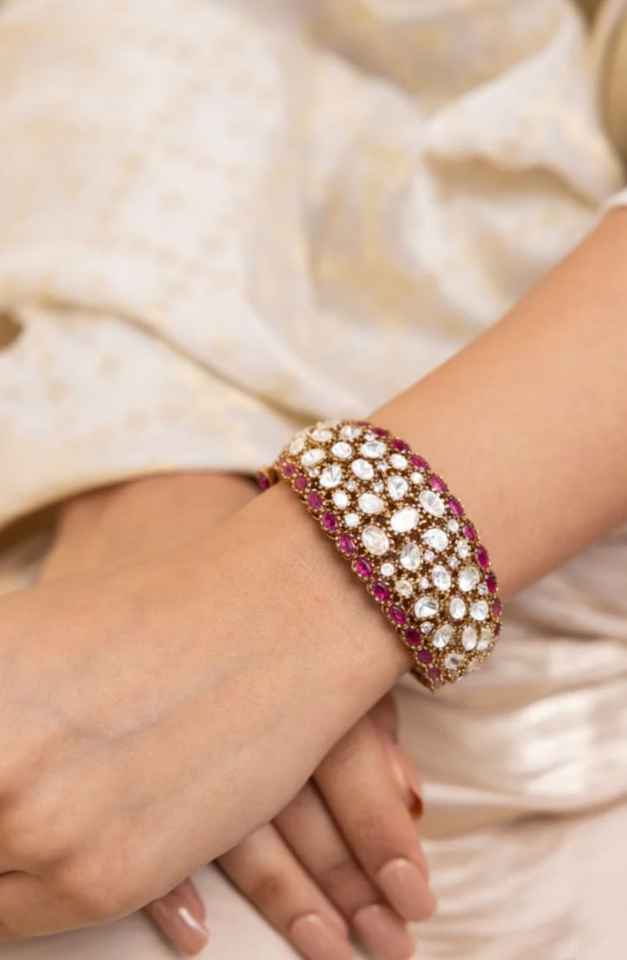 ชุดเครื่องประดับทองเหลืองแบบกำไลข้อมือ Polki ชุบทองด้าน ขนาด 2.4 2.6 ชุบทอง เครื่องประดับแฟชั่นสำหรับงานแต่งงานและงานหมั้น