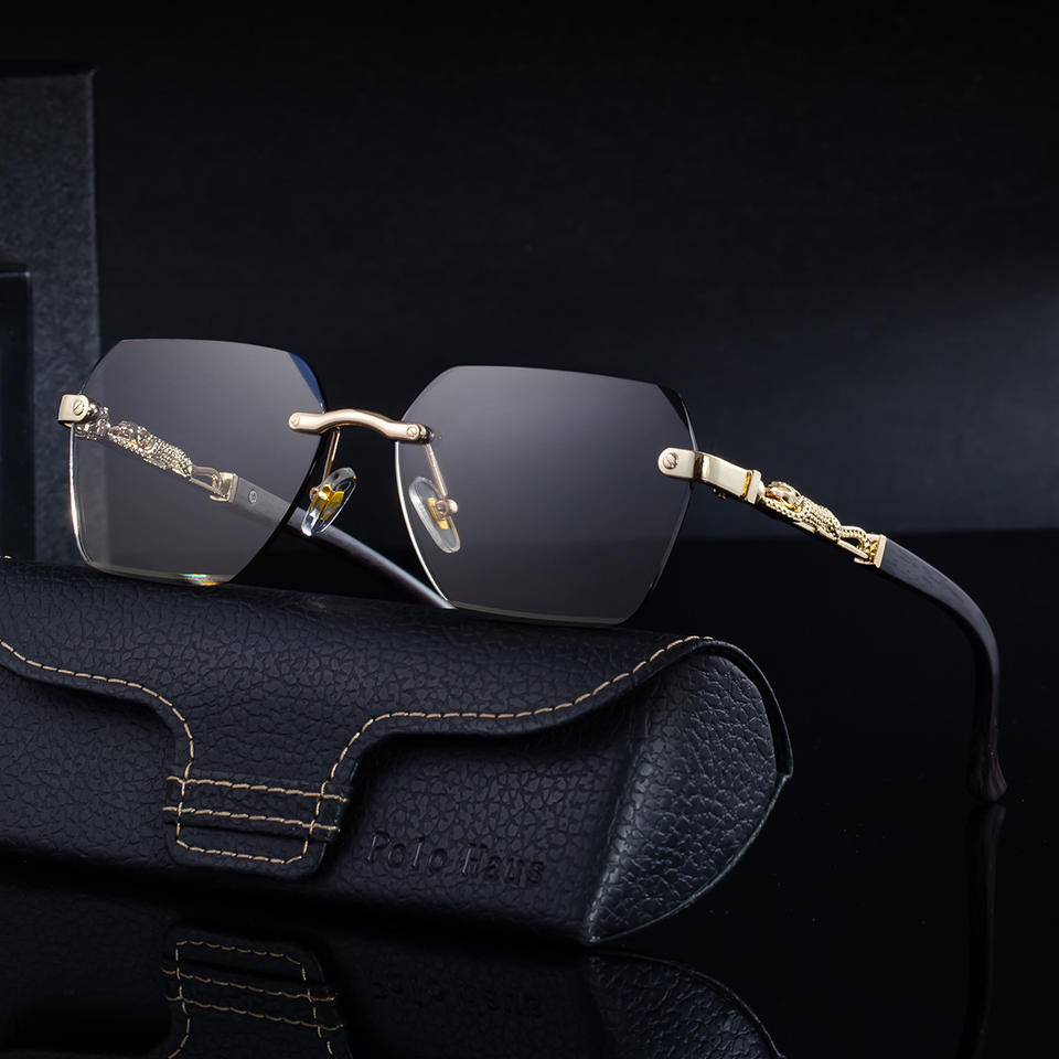แว่นกันแดดโฟโตโครมิกของผู้ชายโปโล UV400คลาส2ชิ้นเลนส์สีดำกรอบสีทอง-ขาวถึงเทา