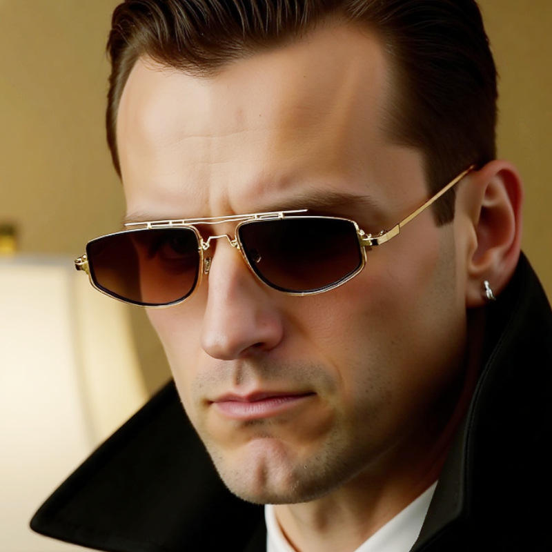 แว่นกันแดดทรงเหลี่ยมสำหรับผู้ชาย Polo Haus เลนส์กระจกสีน้ำเงิน UV400 กรอบ PC สไตล์อินสตาแกรม ป้องกันแสงแดด