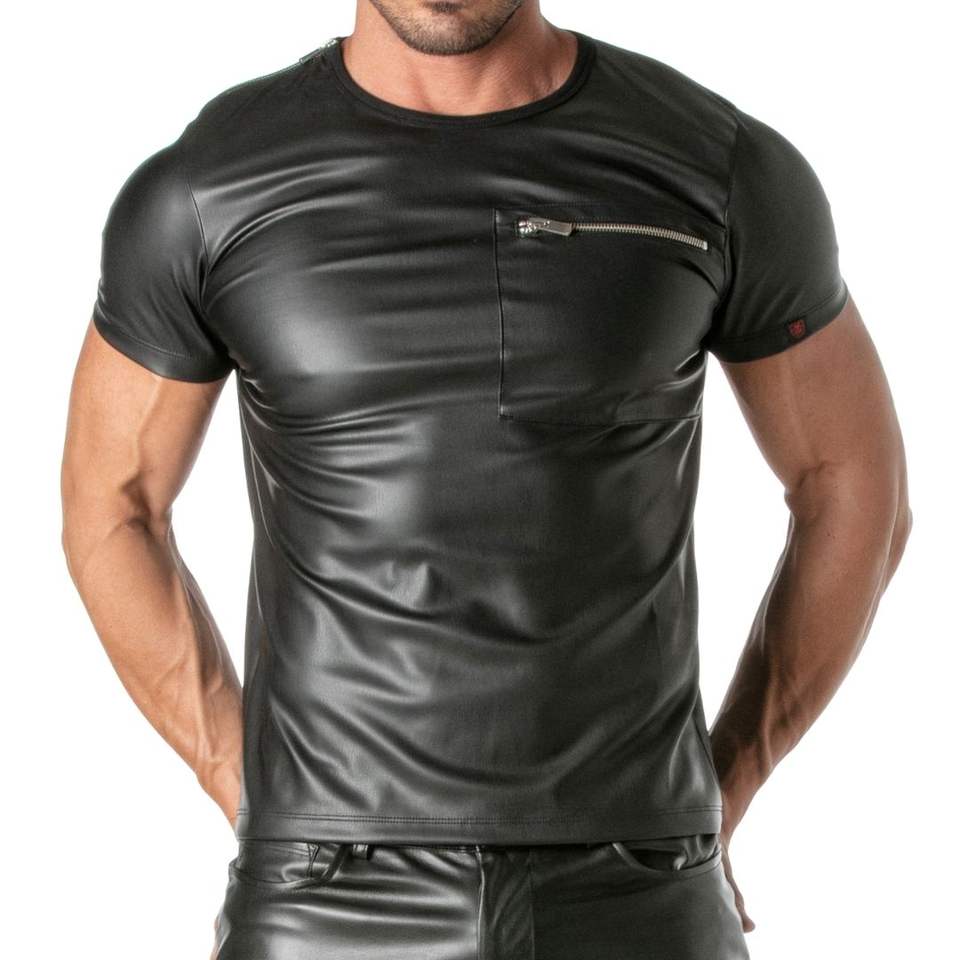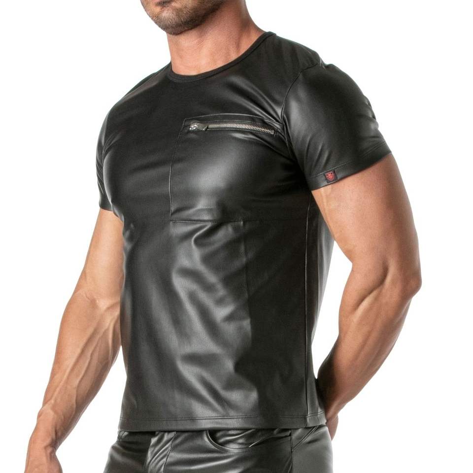 เสื้อโปโลหนังสีดำ แขนสั้น ทรงเข้ารูป สำหรับผู้ชาย สไตล์เฟติช คลับแวร์ เซ็กซี่ แฟชั่นสำหรับงานปาร์ตี้ ป้องกันรังสียูวี ระบายอากาศได้ดี