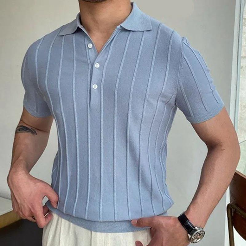 เสื้อโปโลผู้ชายลำลองคอปกพับลงเสื้อแฟชั่นธุรกิจลายทางเสื้อบางเฉียบเสื้อยืดผ้าฝ้ายผ้าไหมน้ำแข็ง