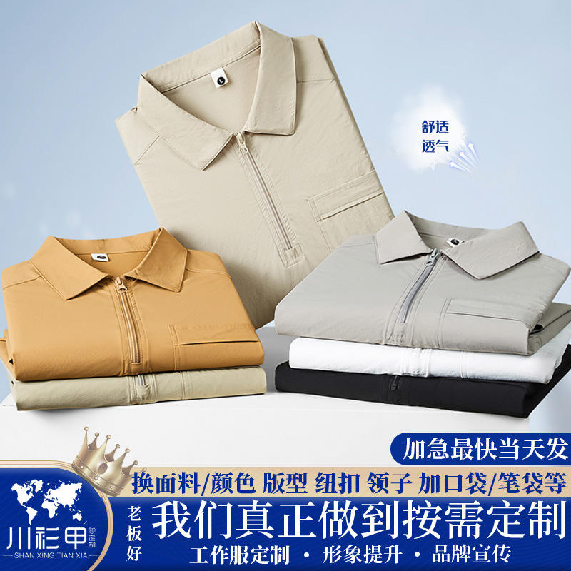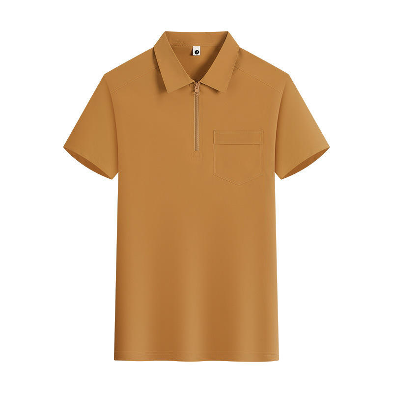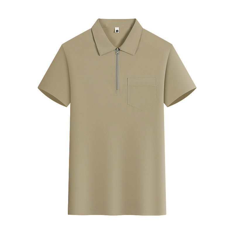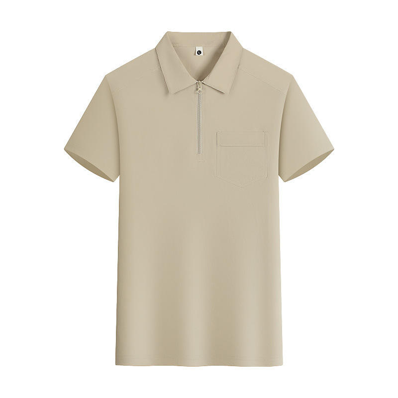 เสื้อโปโลแขนสั้นสีทึบเส้นใยโพลีเอสเตอร์ชุดทำงานสวมใส่ทุกวันสีขาวสีเบจสีส้มสีกากีสีเงินสีเทา YZ01-M086