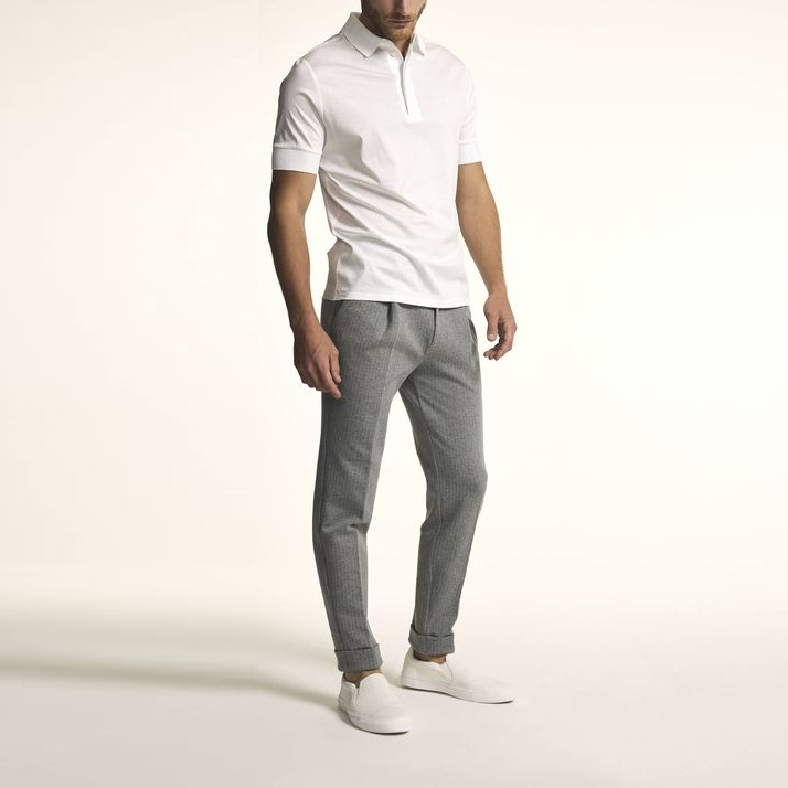 ผ้าไหม100% โปโลสำหรับผู้ชายมีรายละเอียดที่ทันสมัยทำจากเส้นใยฝ้ายเมอร์เซอร์ออร์แกนิกความยาว200กรัม