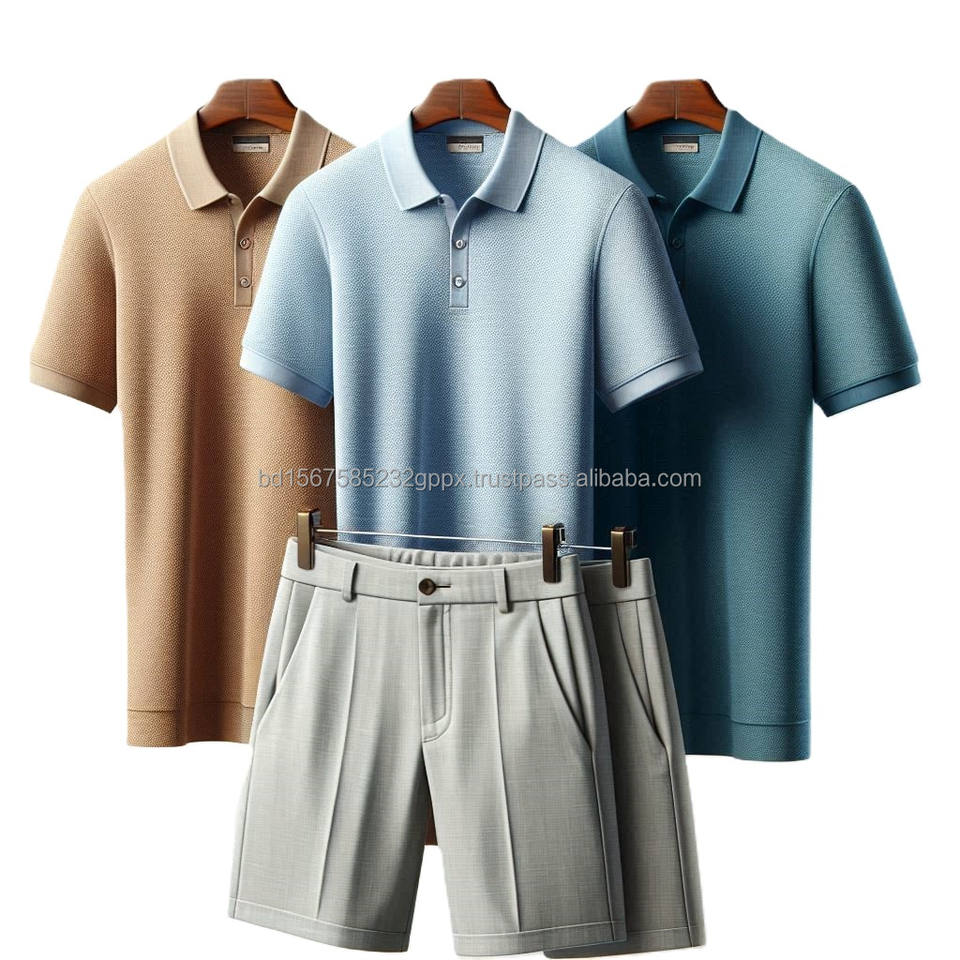 ชุดเสื้อโปโลและกางเกงขาสั้นถักสำหรับผู้ชาย