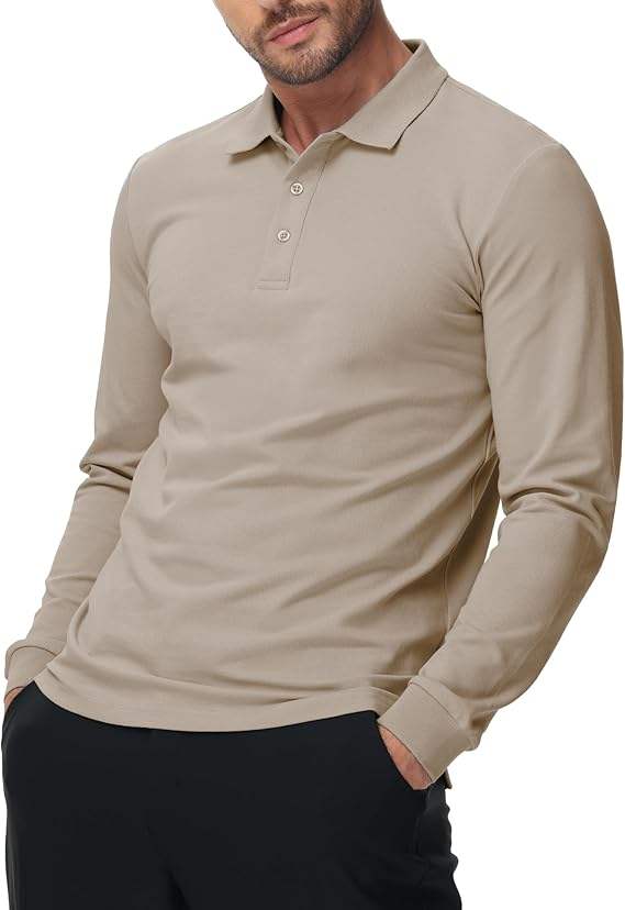 เสื้อโปโลชาย แขนยาว ผ้าฝ้าย สำหรับกอล์ฟ เทนนิส ใส่ทำงาน ใส่เที่ยว ลำลอง มีกระดุม 3 เม็ด เนื้อผ้านุ่มพิเศษ