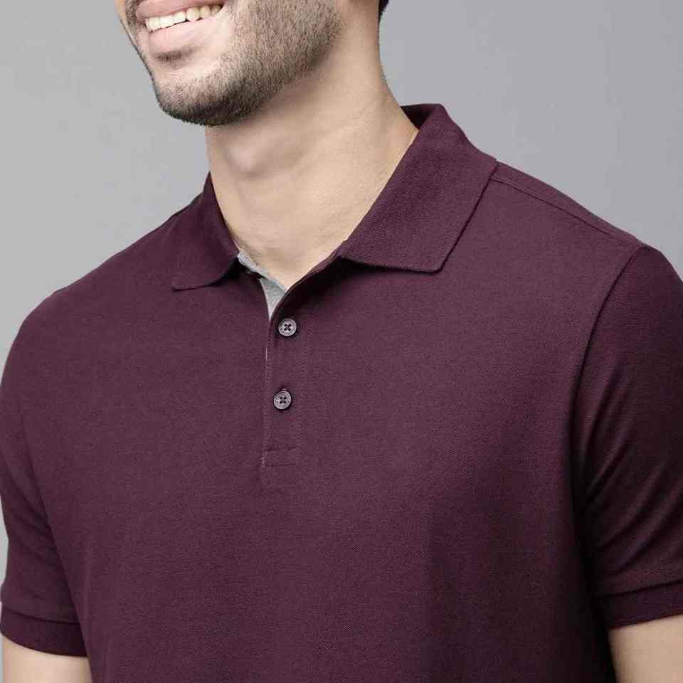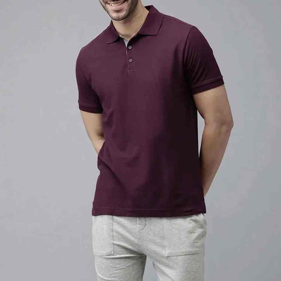 เสื้อยืดโปโลผ้าฝ้ายสีทึบ