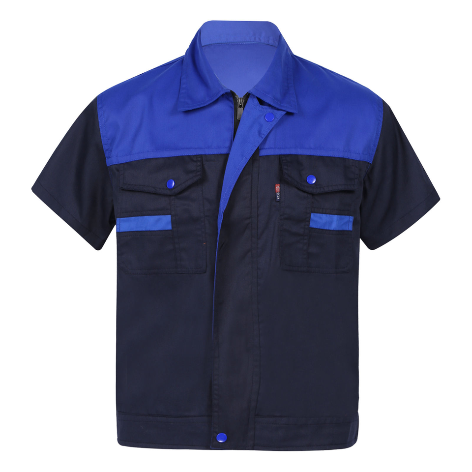 เสื้อทำงานแขนสั้นผ้าโพลีคอตตอนสำหรับผู้ชายชุดทำงานน้ำหนักเบาสำหรับโรงงานช่างประปาช่างซ่อมรถและซ่อมรถยนต์ผลิตในอินเดีย
