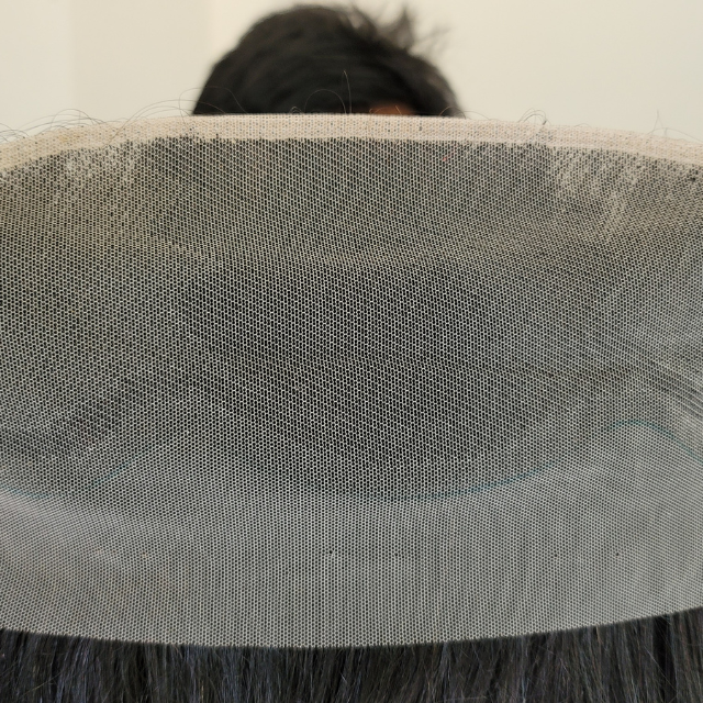 แผ่นปะด้านหน้าผมมนุษย์เกรดเรมี่อินเดียสำหรับชายและหญิงผ้าโพลีแบบผูกด้วยมือ