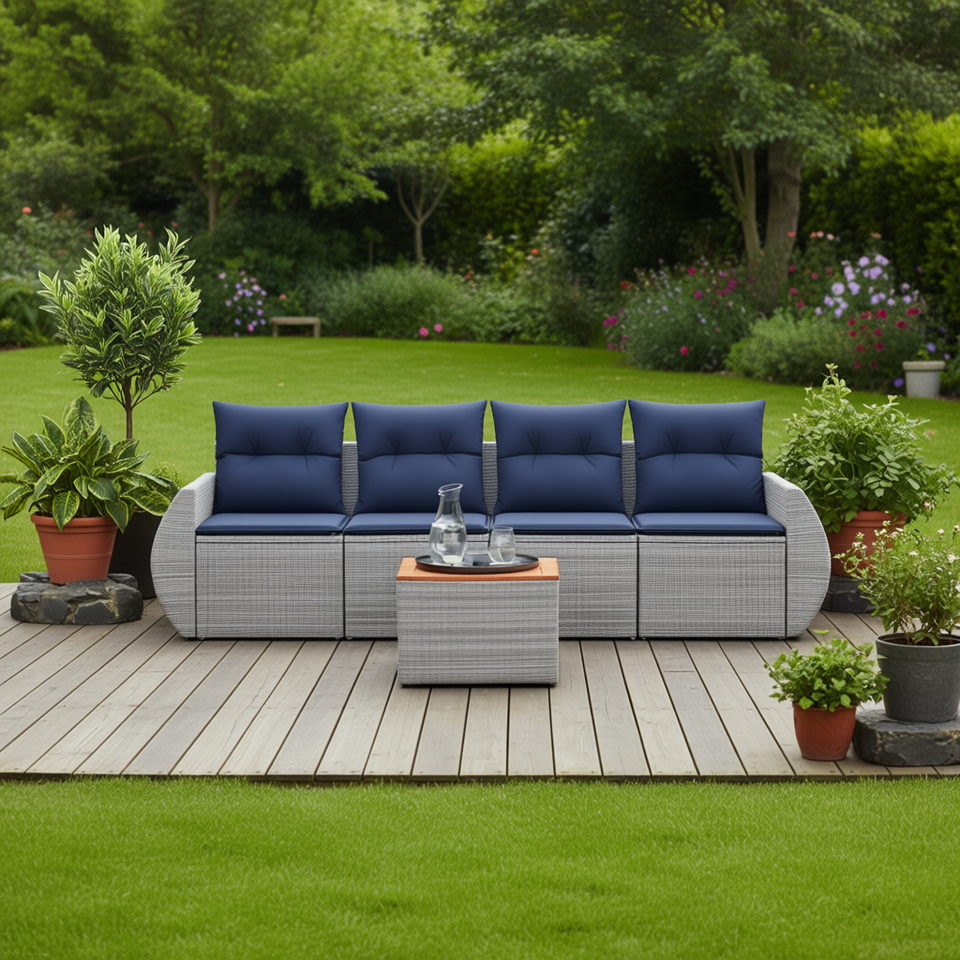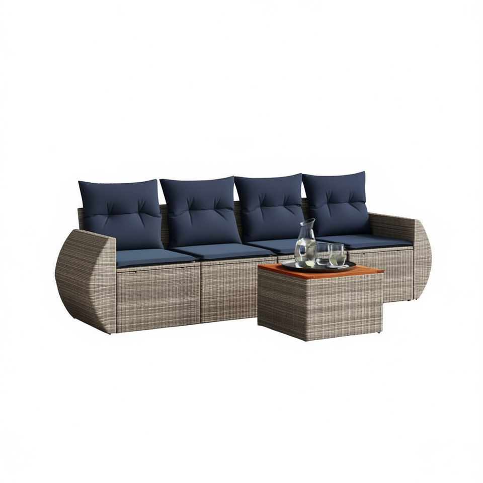 ชุดโซฟาสวนหวายเทียมพร้อมเบาะรองนั่ง 5 ที่นั่ง เฟอร์นิเจอร์กลางแจ้ง สไตล์ร่วมสมัย สีเทา