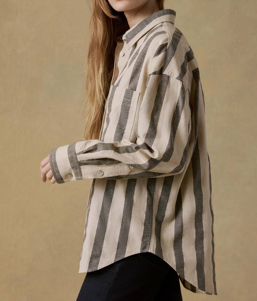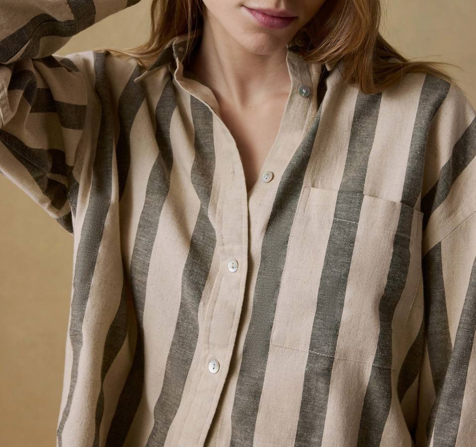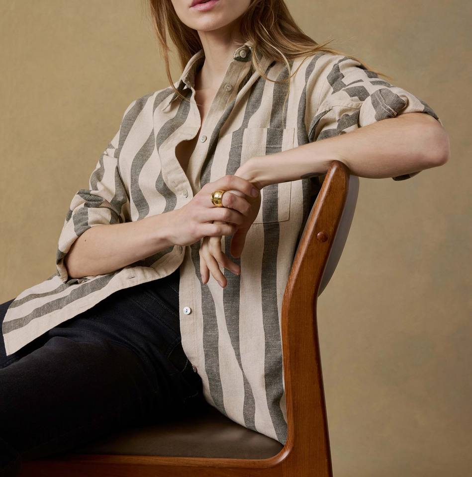 เสื้อเชิ้ตผ้าโพลีเอสเตอร์/คอตตอน ระบายอากาศได้ดี สไตล์วินเทจ เรียบง่าย สวมใส่สบาย ลายทางพайнเบย์ เหมาะสำหรับทำงาน