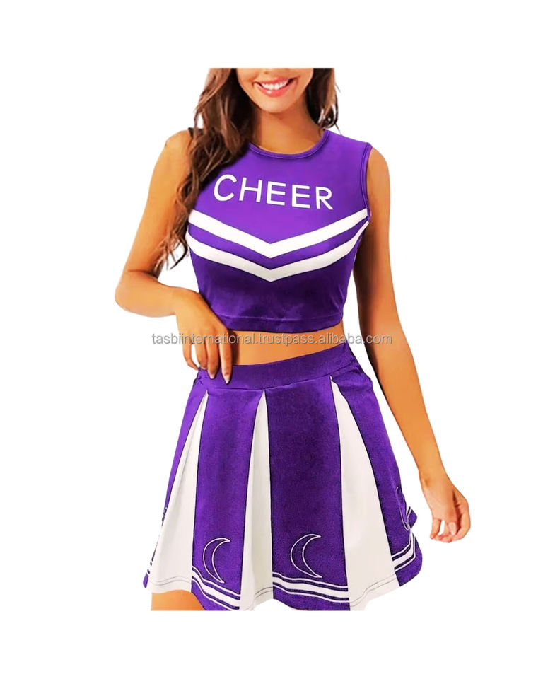 ชุดยูนิฟอร์มเชียร์ลีดเดอร์ผ้าโพลีเอสเตอร์คอตตอน พร้อมลายพิมพ์แบบรีดร้อน ออกแบบชุดเชียร์ลีดเดอร์ตามสั่ง