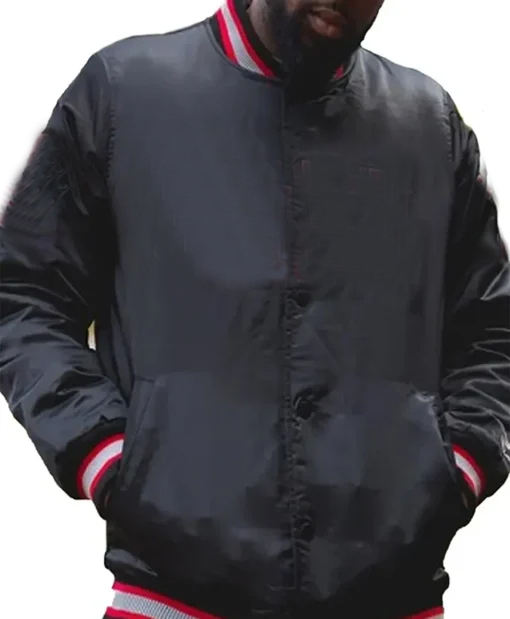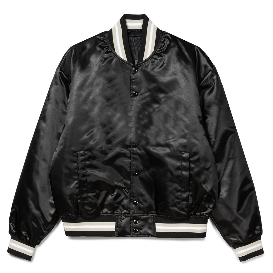 Polyester/Cotton Custom Varsity Embroidered Quilted Lined Stand Collar Front Logo Men's Baseball Bomber Satin Jacket