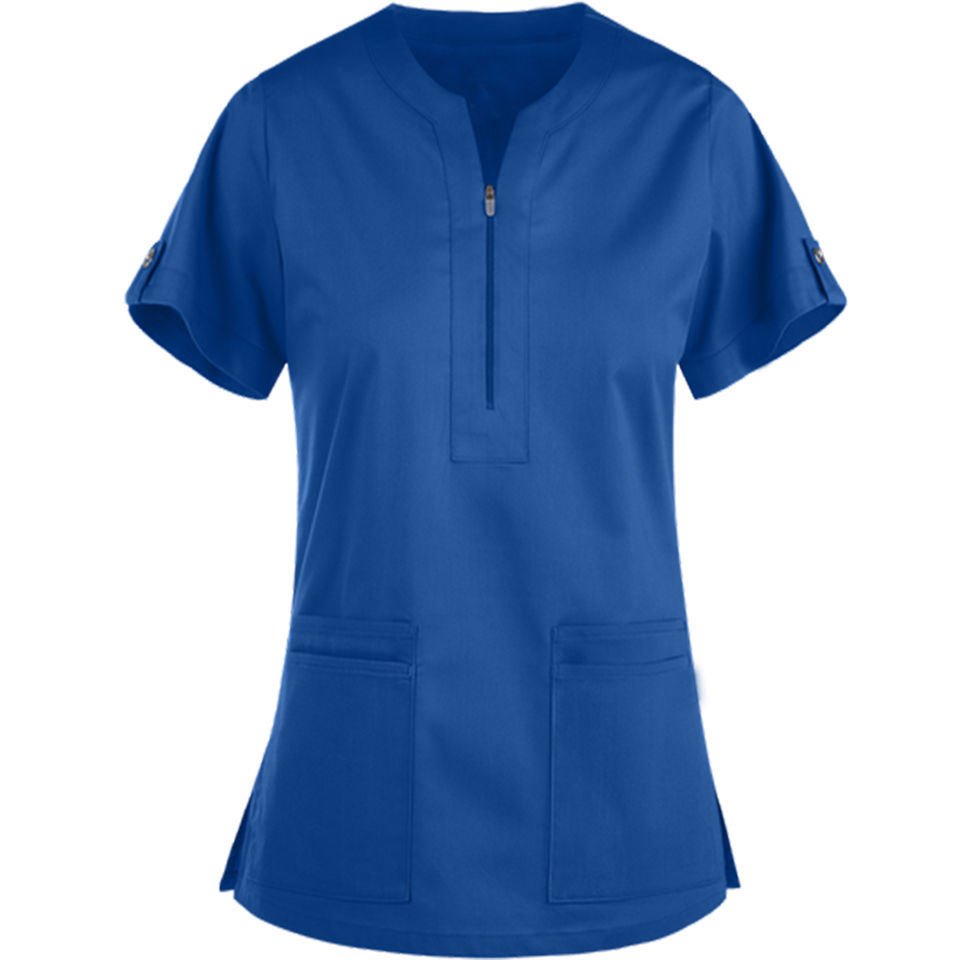 ชุดพยาบาลผ้าฝ้ายโพลีเอสเตอร์แยกต่างหากชุดเสื้อโค้ทสำหรับห้องแล็บสีฟ้า