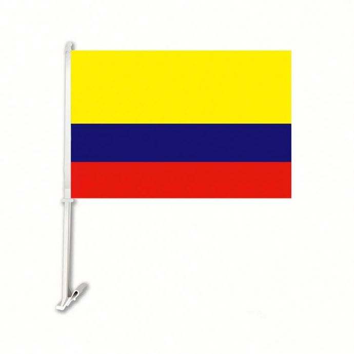 ธงโคลอมเบียสำหรับตกแต่งรถยนต์ ขนาด 12x18 นิ้ว ผลิตจากโพลีเอสเตอร์ เย็บสองชั้น สำหรับติดกระจกรถยนต์ ใช้ตกแต่งภายนอก