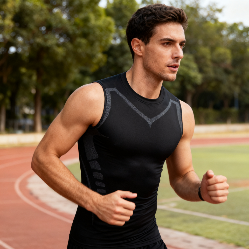 เสื้อกล้ามผู้ชายสำหรับวิ่ง XL ชุดออกกำลังกายระบายอากาศได้ดีมีฮู้ดสำหรับออกกำลังกายรัดรูปไม่มีลาย3D สไตล์กล้ามเนื้อ