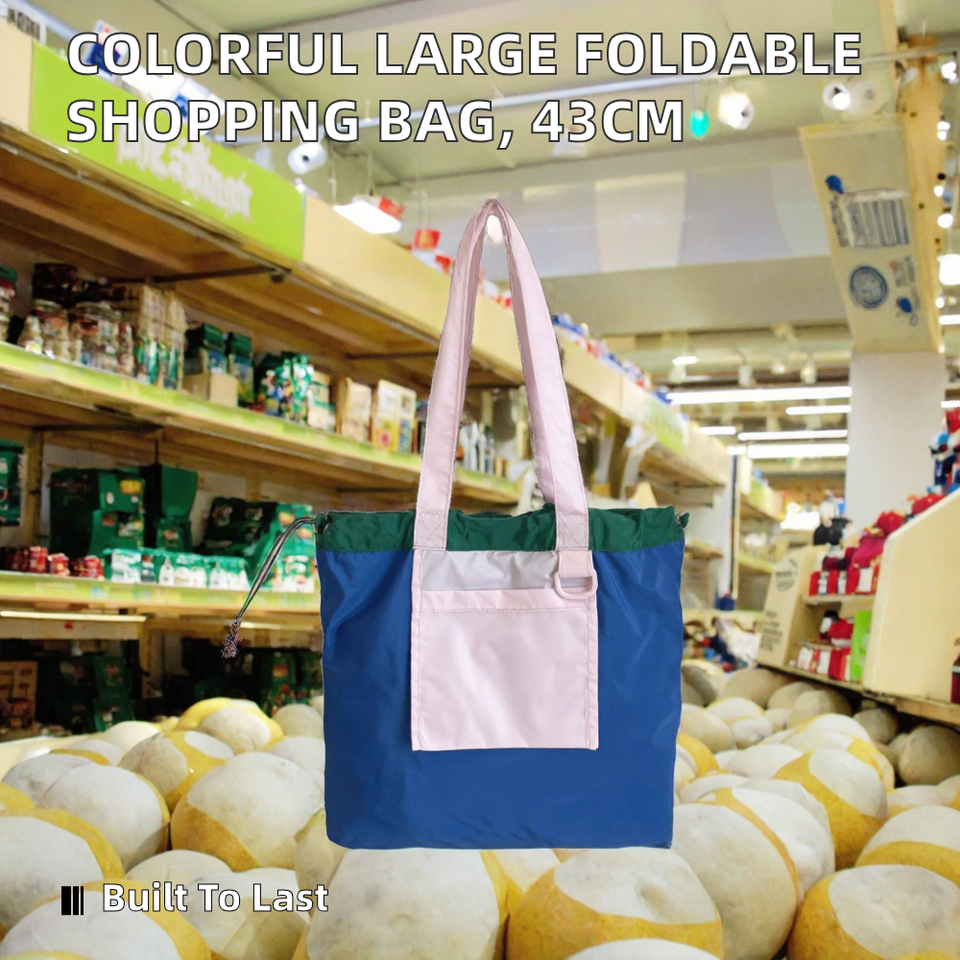 ถุงช้อปปิ้งพับได้ โพลีเอสเตอร์ สกรีนโลโก้ได้ น้ำหนักเบา ใช้ซ้ำได้ มีหูหิ้วสะพายไหล่ สำหรับซุปเปอร์มาร์เก็ตและการเดินทาง ขนาด 43x8x43 ซม.