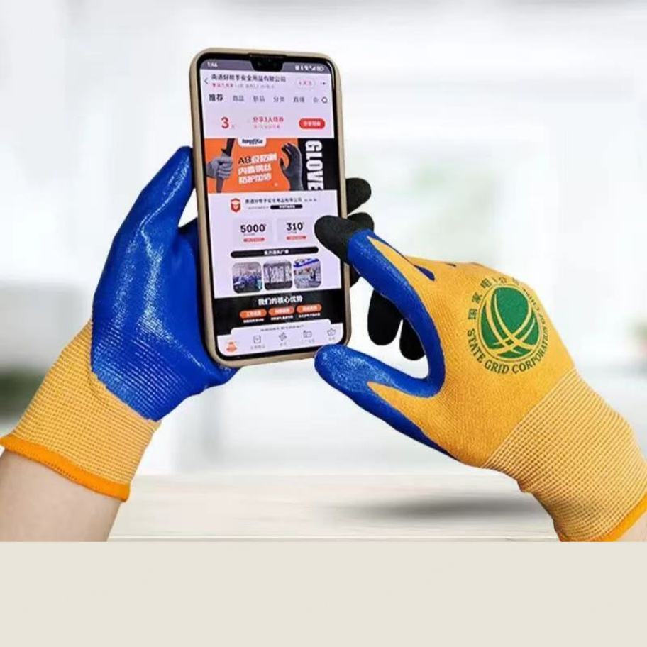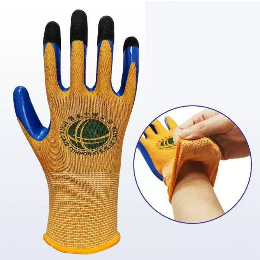ถุงมือโพลีเอสเตอร์ถักแบบยางลาเท็กซ์ ถุงมือป้องกันอุบัติเหตุในอุตสาหกรรม ฝ่ามือแบบไมโครคริงเคิล กันลื่น ทนน้ำมัน แบบสองชั้น
