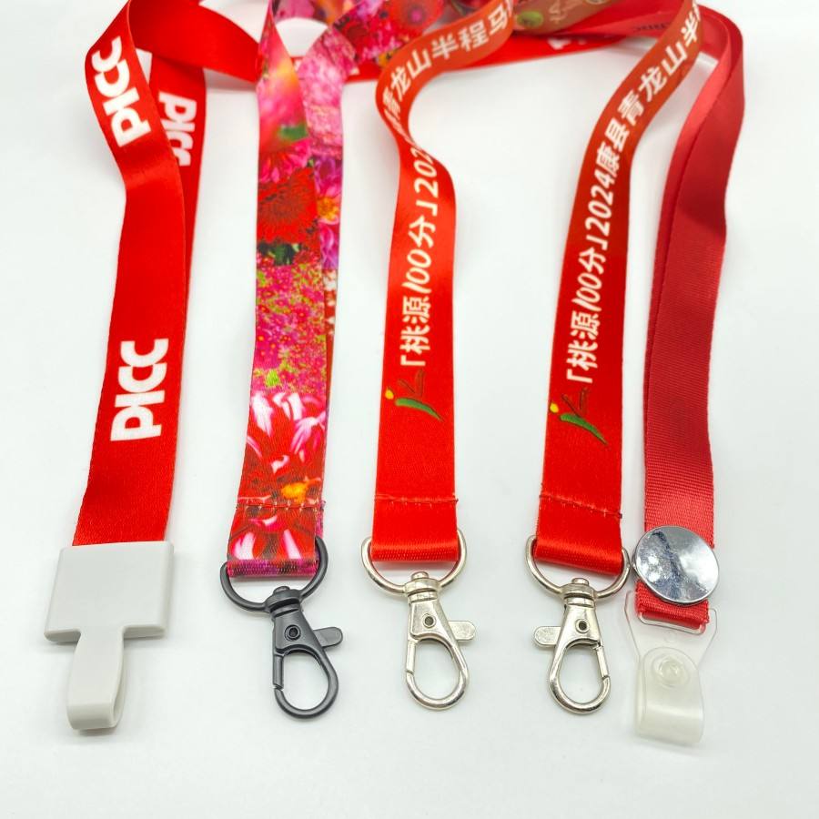 สายคล้องโพลีเอสเตอร์ปรับแต่งได้พร้อมพิมพ์ซิลค์สกรีนและตะขอสำหรับใส่บัตรประชาชน