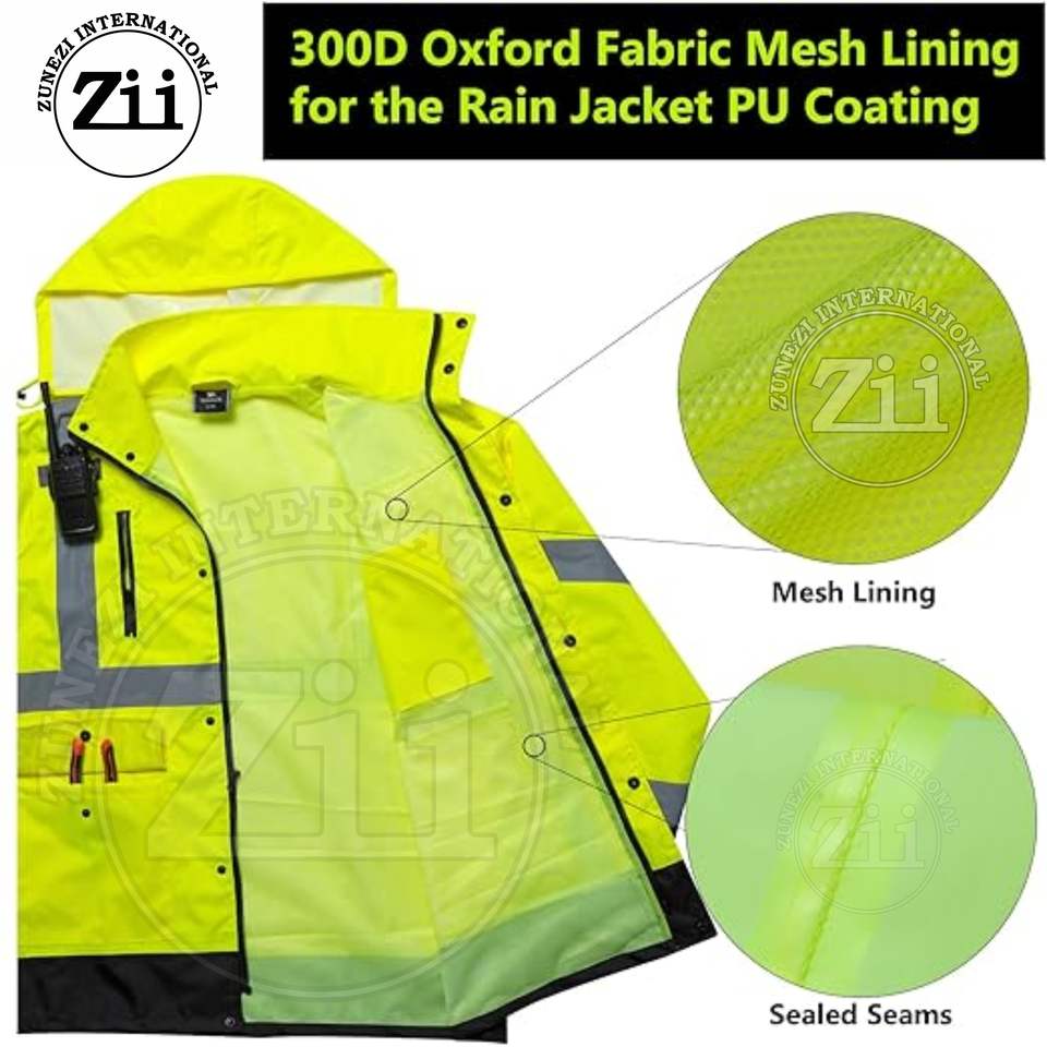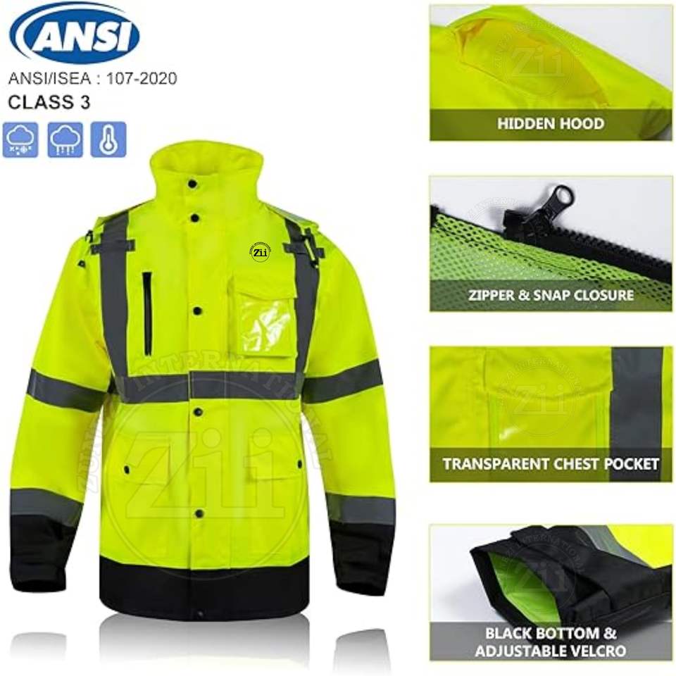 เสื้อแจ็คเก็ตนิรภัยโพลีเอสเตอร์แขนยาว สะท้อนแสง ANSI Class 2 กันน้ำ กันลม สำหรับฤดูหนาว มีกระเป๋าสำหรับชุดทำงาน