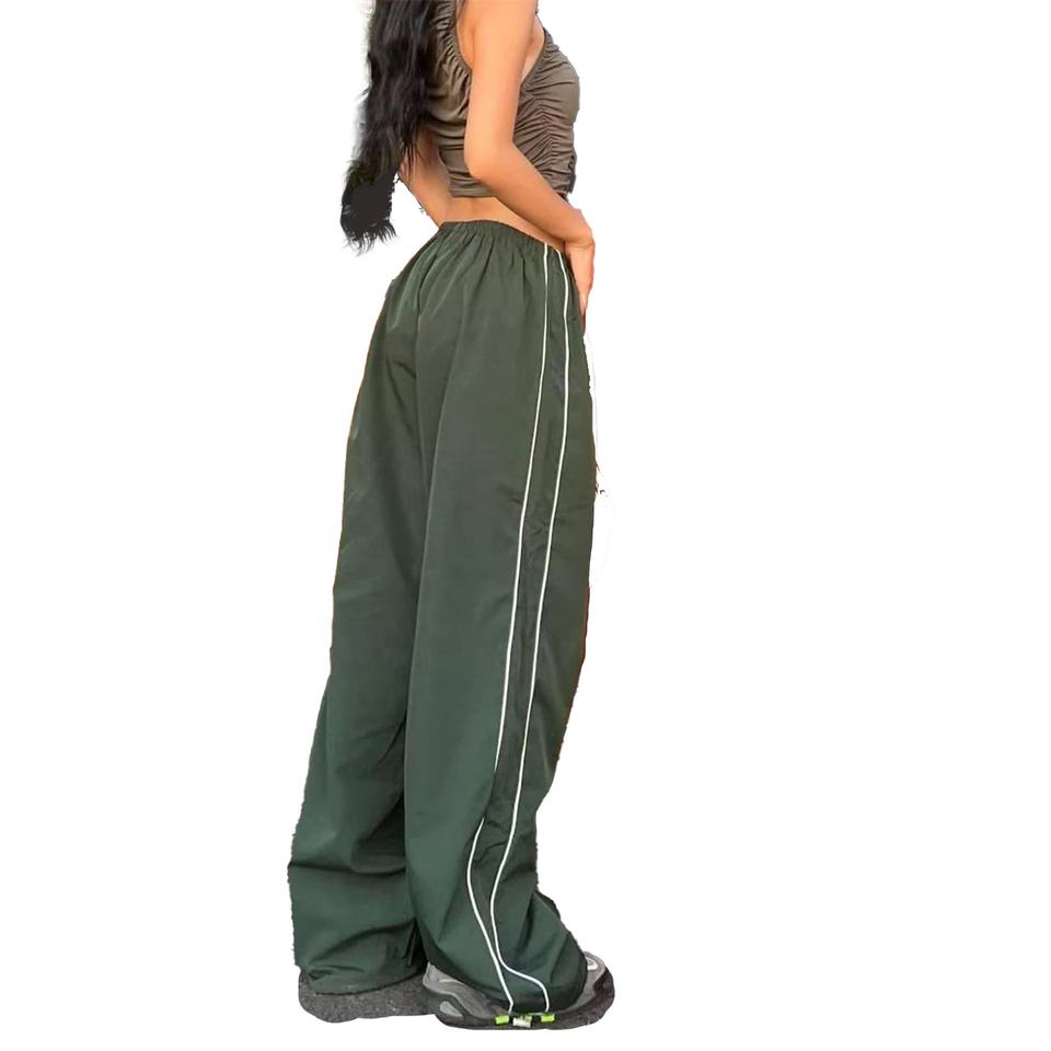 กางเกงวอร์มขากว้างสำหรับผู้หญิงกางเกงแนวสตรีทเอวยางยืดสำหรับ Y2K แนวสตรีทเอวยางยืดทรงหลวมโพลีเอสเตอร์