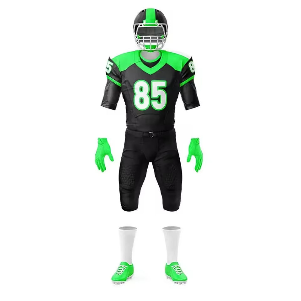 ชุดยูนิฟอร์มอเมริกันฟุตบอลทำจากโพลีเอสเตอร์ ระบายอากาศได้ดี ปรับแต่งได้ สำหรับผู้ใหญ่ ทั้งชายและหญิง ป้องกันแบคทีเรีย ขายส่ง