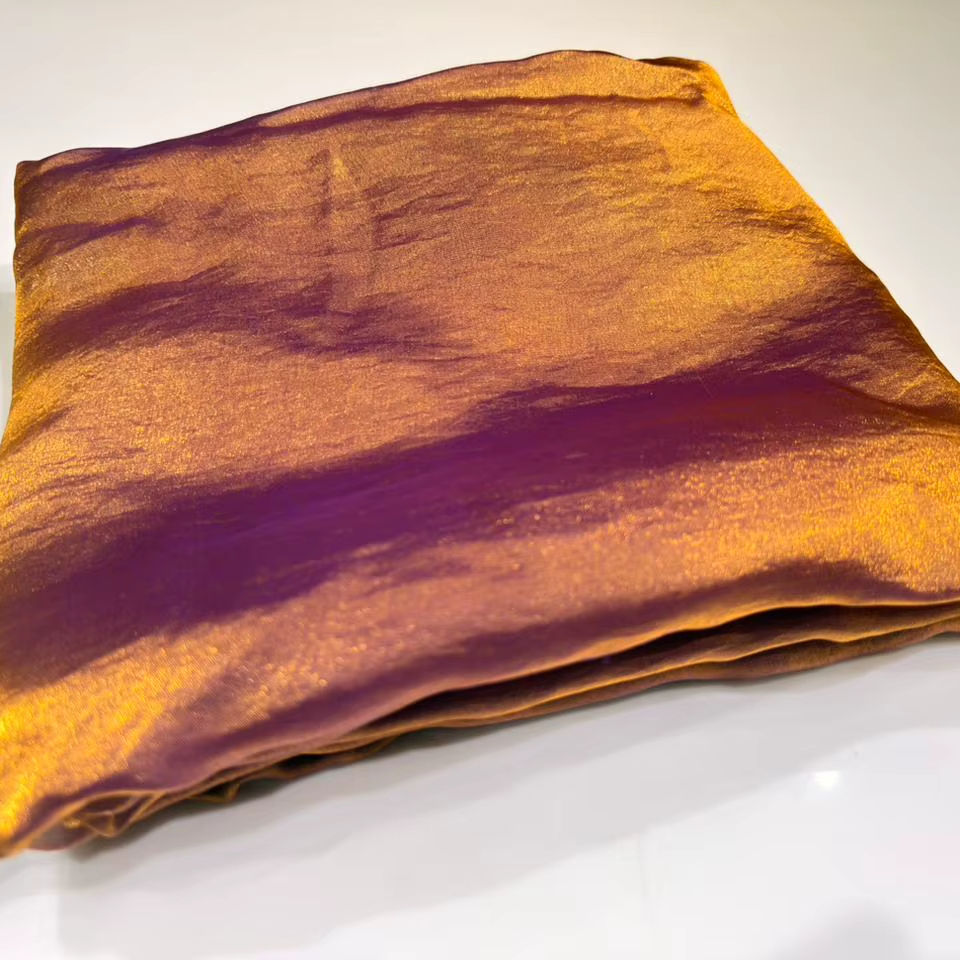 ผ้าซาตินทอเนื้อเมทัลลิก โพลีเอสเตอร์/ไนลอน เรียบลื่น น้ำหนักปานกลาง เหมาะสำหรับชุดแต่งงาน/ชุดสำหรับโอกาสพิเศษ