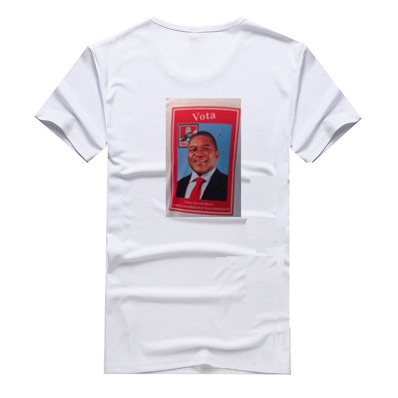 เสื้อยืดสีขาวเลือกตั้งสำหรับผู้ชายผ้าโพลีเอสเตอร์ OEM ออกแบบโลโก้แบบเรียบ