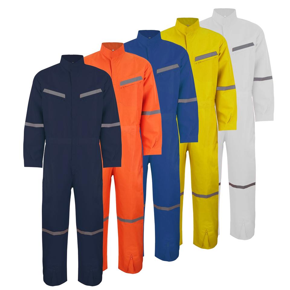 ชุดทำงานผ้าโพลีเอสเตอร์ป๊อปลินแบบสะท้อนแสงสำหรับงานอุตสาหกรรม
