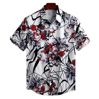 เสื้อโพลีเอสเตอร์ขายดีที่สุดราคาถูก OEM แขนสั้นพิมพ์ผู้ชายลำลองฤดูใบไม้ร่วงผ้าฝ้ายดอกไม้จีนแฟชั่นที่กำหนดเอง