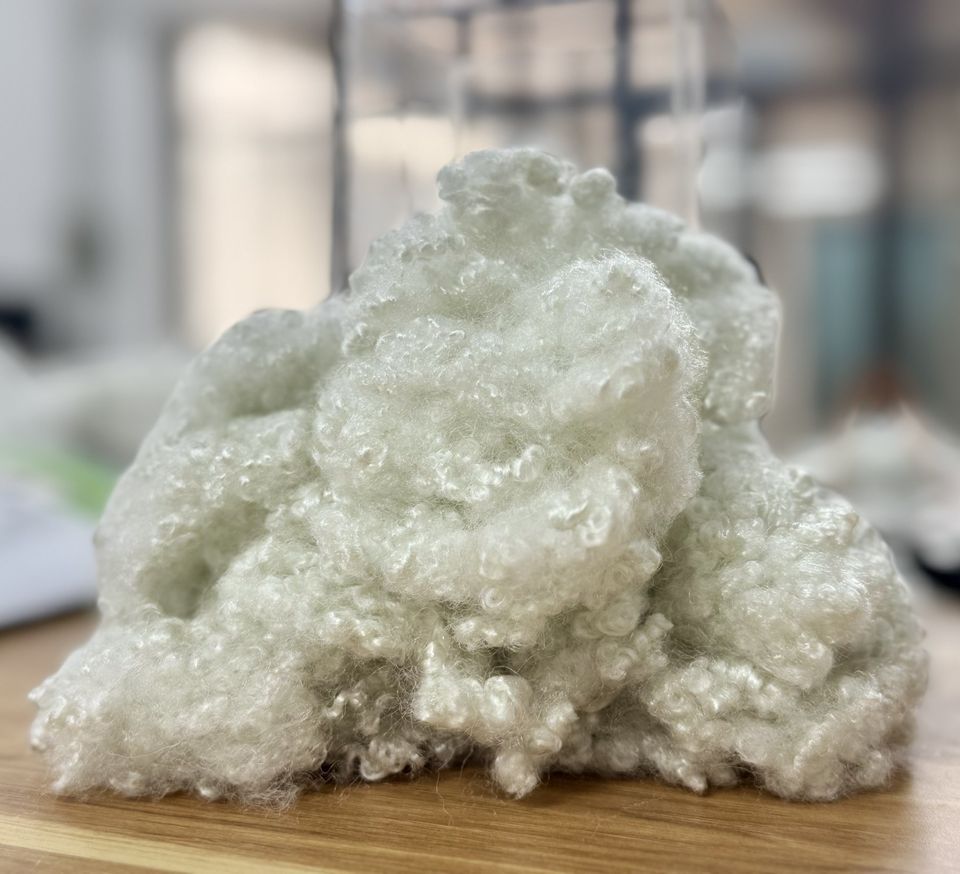 เส้นใยโพลีเอสเตอร์แบบสแตป 15D 51 มม. HCS สำหรับบรรจุใยโพลีเอสเตอร์แบบกลวงเคลือบซิลิโคนบริสุทธิ์จากเวียดนาม
