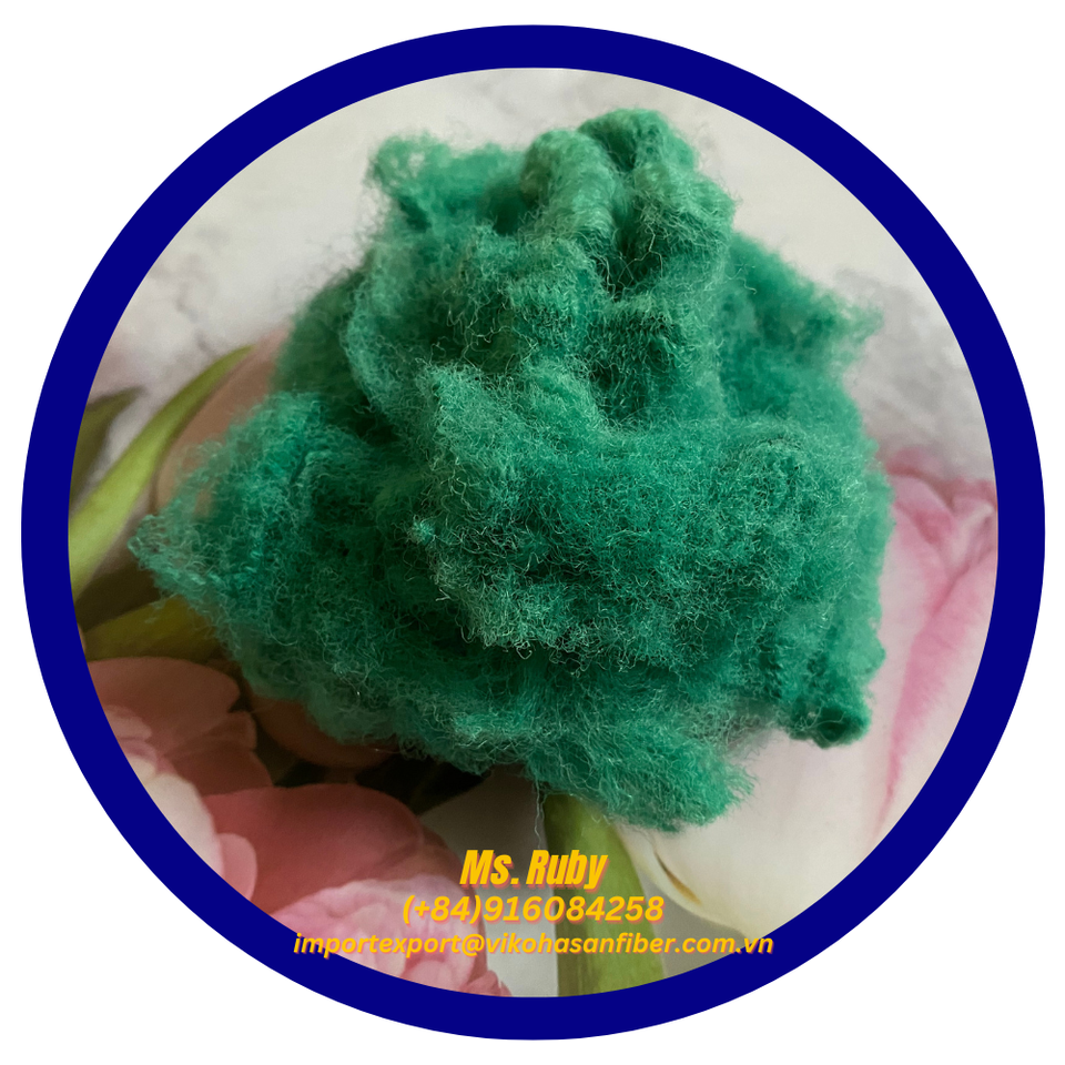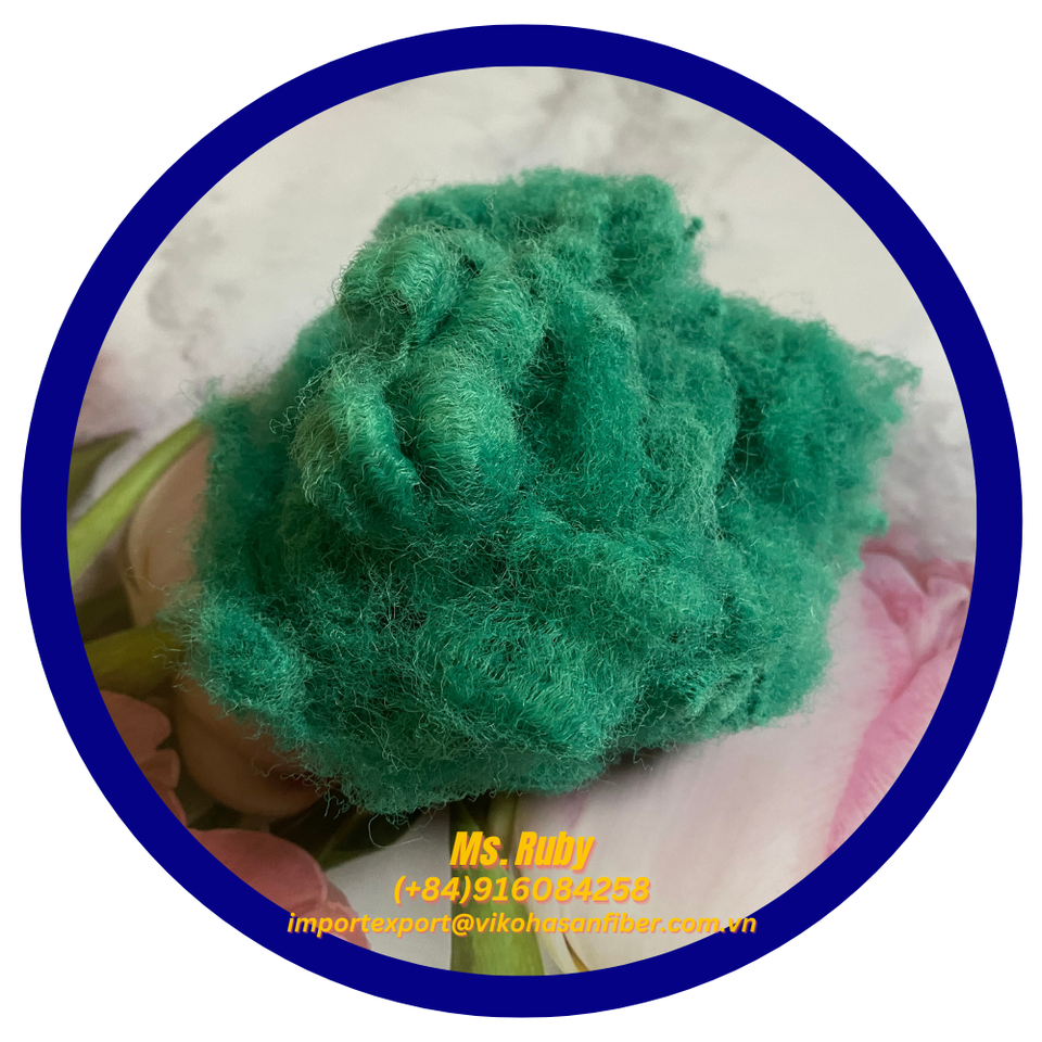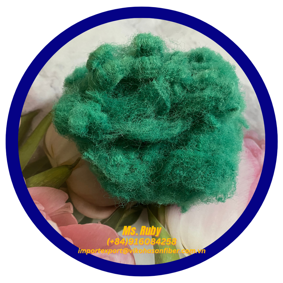 20D SD สีเขียวทำจากเวียดนามเส้นใยโพลีเอสเตอร์สำหรับรีไซเคิลเส้นใยโพลีเอสเตอร์สเกรด GRS พรมรองนอนแผ่นใยใยเพิ่มการปั่นคอนกรีต
