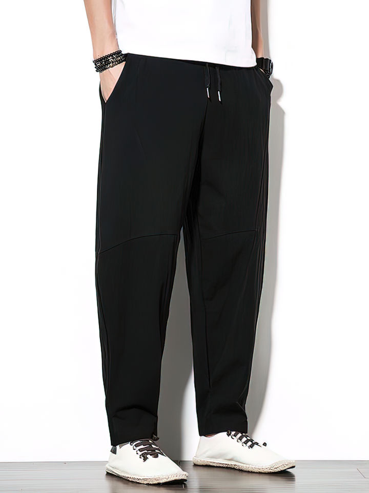 กางเกงผ้าโพลีเอสเตอร์ผสมผ้าฝ้ายลินินสำหรับผู้ชาย กางเกงลำลองทรงหลวมขากว้าง กางเกงวอร์มใส่เดินเล่น กางเกงฤดูร้อน ดีไซน์ใหม่ปี 2026 สำหรับผู้ชาย
