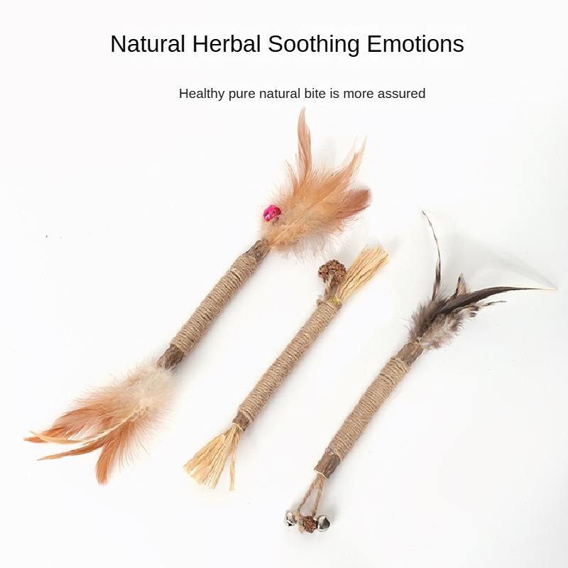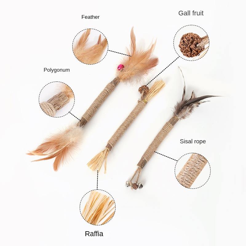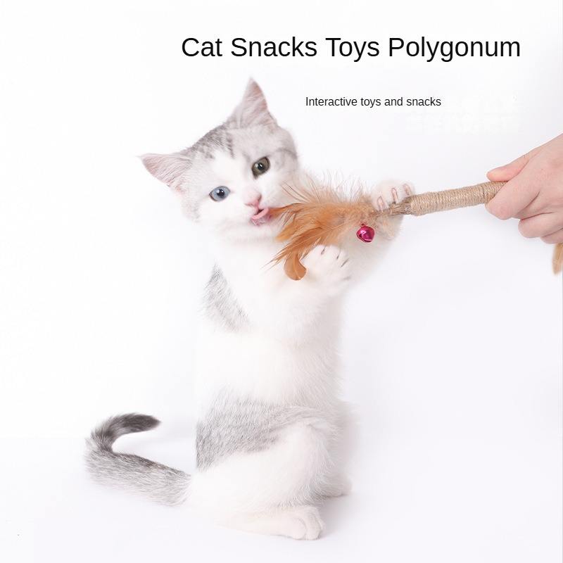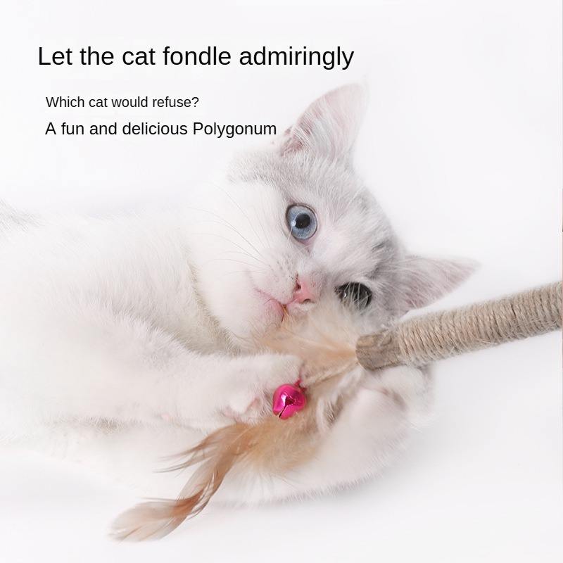 ของเล่นเคี้ยวรูปทรงก้างปลาสำหรับแมว ทำจากผลโพลีโกนัม มัลติฟลอรัม พร้อมแท่งสำหรับกัดแทะและกระตุ้นการกัด