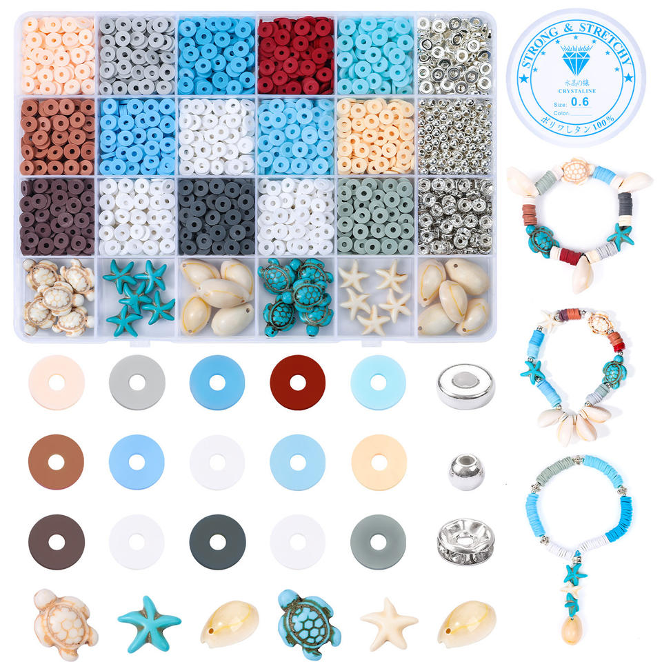 ชุดลูกปัดดินโพลิเมอร์24แผ่นดิสก์โพลิเมอร์ดินฤดูร้อนสไตล์มหาสมุทรชุดของขวัญงานฝีมือสำหรับสร้อยข้อมือมิตรภาพ
