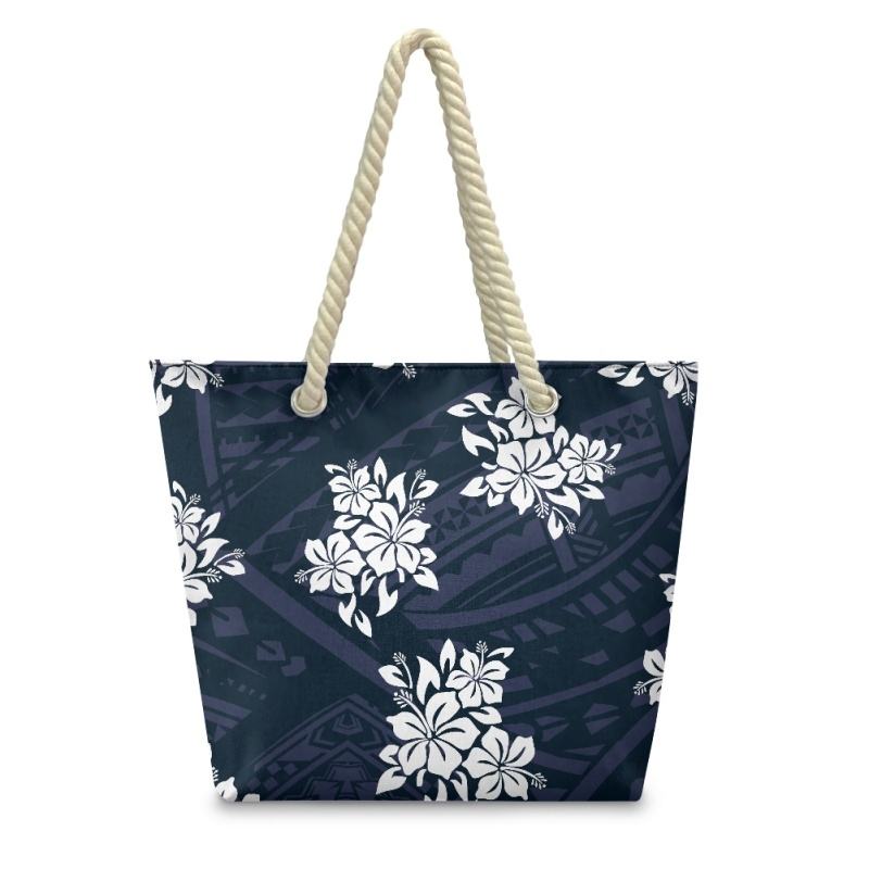กระเป๋าถือสตรีลายโพลินีเซียฮิบิสคัส POD Dropship กระเป๋าชายหาดคลาสสิกสำหรับสุภาพสตรี