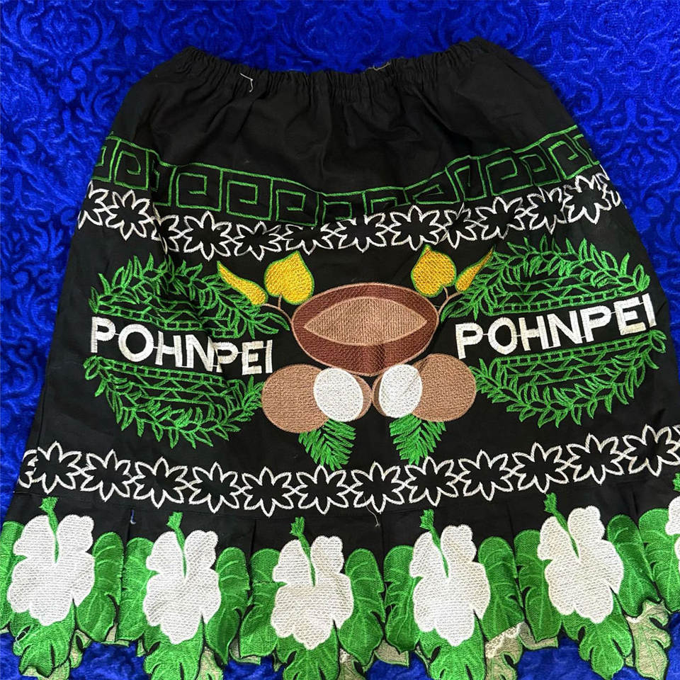 ผ้าปักลายเต็มผืนแบบโพลินีเซียน ฮาวาย ซามัว โปห์นเปีย ระบายอากาศได้ดี ยาวถึงพื้น มีเชือกผูกเอวแบบยางยืด แบบดั้งเดิมของไมโครนีเซีย