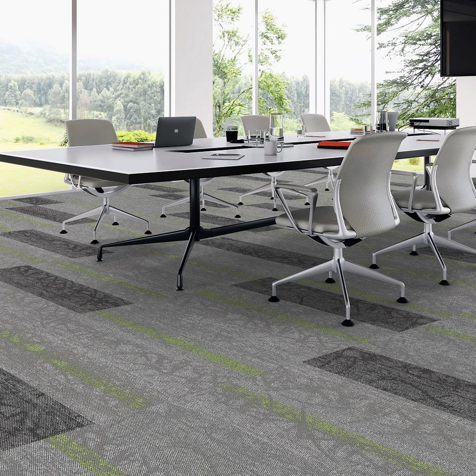 กระเบื้องพรมลายทางแบบสี่เหลี่ยมผืนผ้า ผลิตจากโพลีโพรพิลีน พร้อมแผ่นรองพื้น PVC ดีไซน์ทันสมัยสำหรับใช้ในบ้านและเชิงพาณิชย์