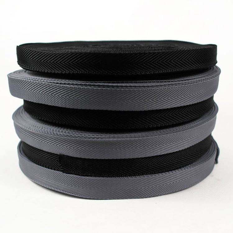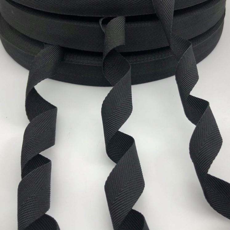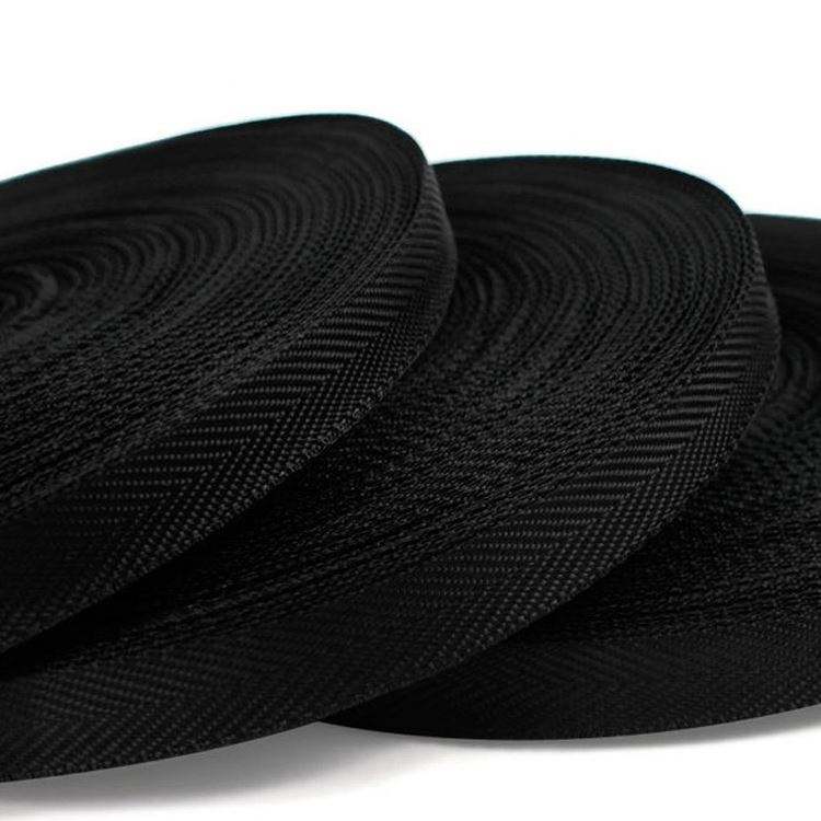 สายรัดโพลีโพรพิลีนสีดำเคลือบขอบสำหรับผู้ผลิตกระเป๋า ปรับแต่งได้ เป็นมิตรกับสิ่งแวดล้อม สายรัด PP ขนาด 25 มม.