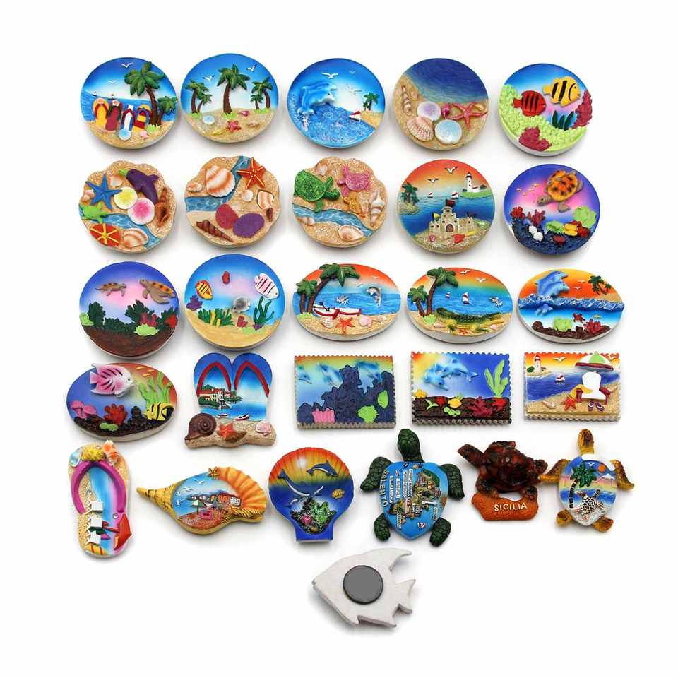 แม่เหล็กติดตู้เย็นเรซิ่นโพลีเรซิ่นแบบพิมพ์ 3 มิติ ของที่ระลึก รูปทรงแม่เหล็กติดตู้เย็นลายชายฝั่ง ดีไซน์เรซิ่น สามารถปรับแต่งได้