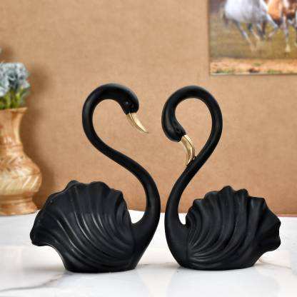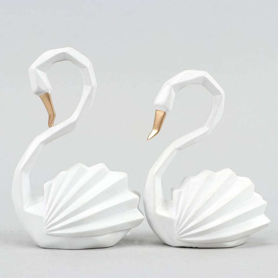 ชุดของตกแต่งรูปหงส์เรซิ่นโพลี จำนวน 2 ชิ้น | ตุ๊กตาตกแต่งขนาด 9.5 นิ้ว ดีไซน์หรูหรา สำหรับตกแต่งบ้านและสำนักงาน