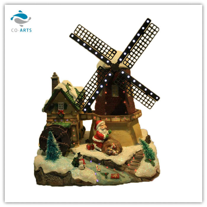 โคมไฟ LED โพลีเรซินพร้อมล้อมบ้านและสวนรูปสลักชื่อกระโจมไฟโพลีเรซิน