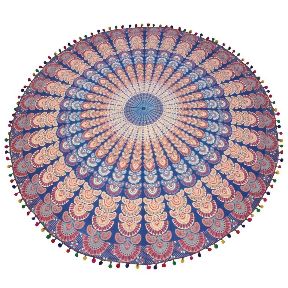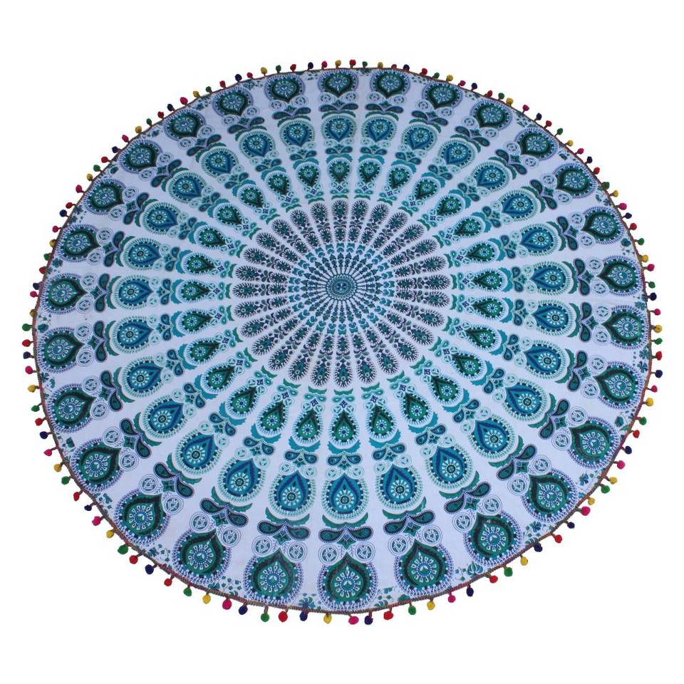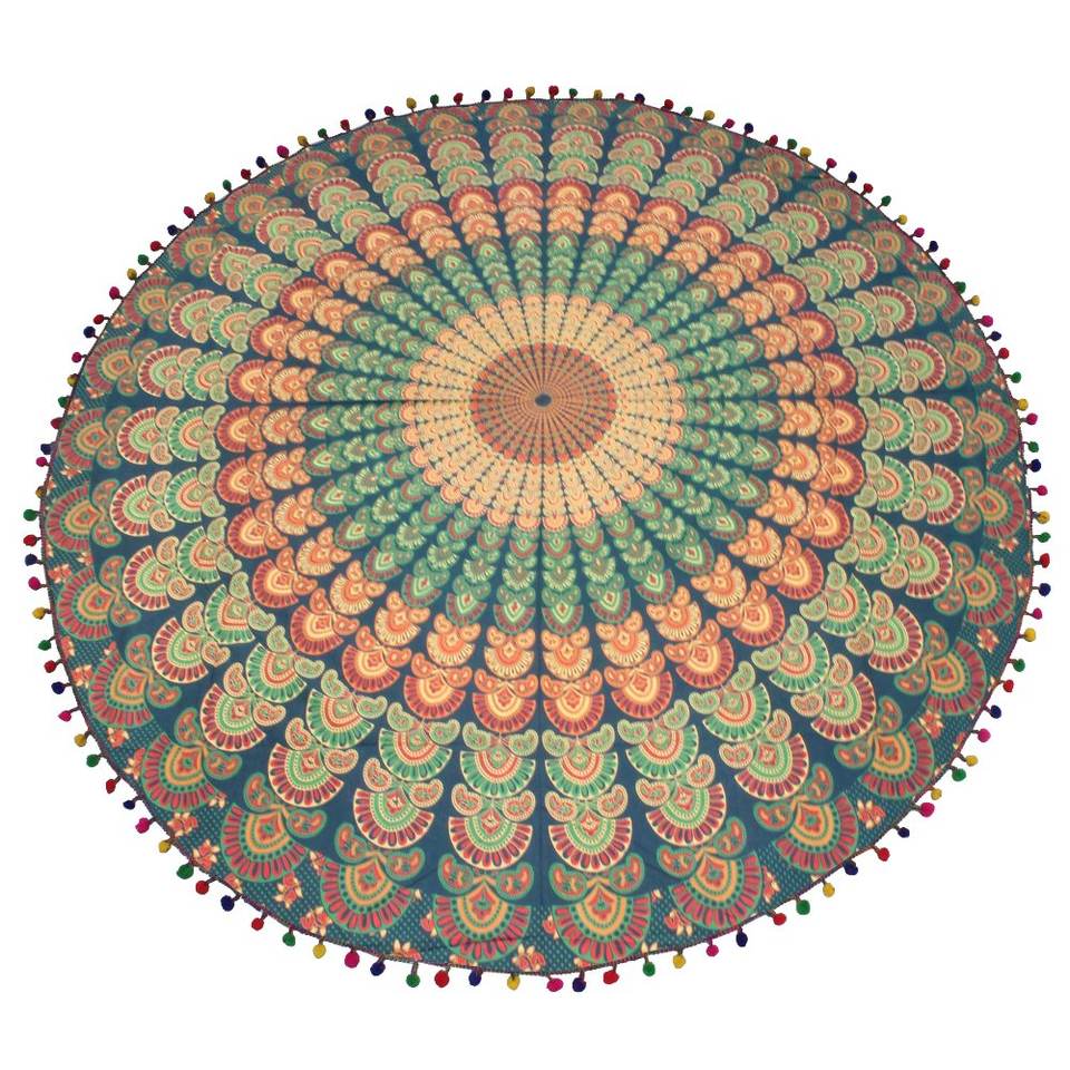 Pom Pom MEDALLION พิมพ์ลาย Mandala ผ้าขนหนูชายหาดโยน Mandala ผ้าขนหนูชายหาดโยนผ้าอินเดีย roundie ขายส่งศิลปะผนัง Mandala