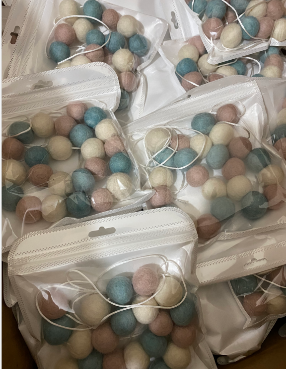พวงมาลัยปอมปอมที่มีสีสันรู้สึกลูกบอล