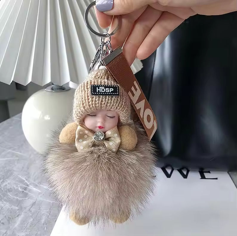 พวงกุญแจตุ๊กตาขนปุยน่ารัก รูปเด็กน้อยกำลังนอนหลับ ของขวัญสำหรับผู้หญิงและเด็กผู้หญิง ใช้ตกแต่งกระเป๋าและกุญแจรถ