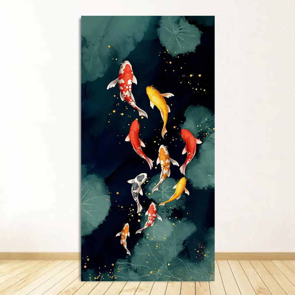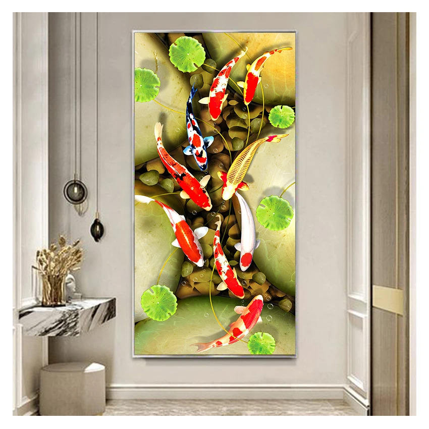 ภาพวาดผ้าใบในบ่อโปสเตอร์ที่ทันสมัยและพิมพ์ภาพศิลปะบนผนังสำหรับห้องนั่งเล่นตกแต่งบ้าน cuadros KOI ปลาฮวงจุ้ยปลาคาร์พดอกบัว