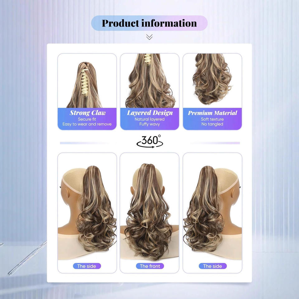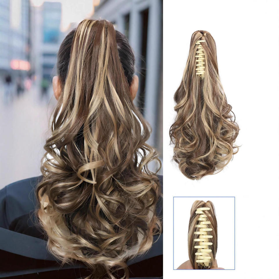 วิกผมหางม้า 18 นิ้ว ผมยาวหยักศกแบบคลิปต่อ สำหรับผู้หญิง สไตล์มิส พร้อมสีธรรมชาติและเพิ่มวอลลุ่ม